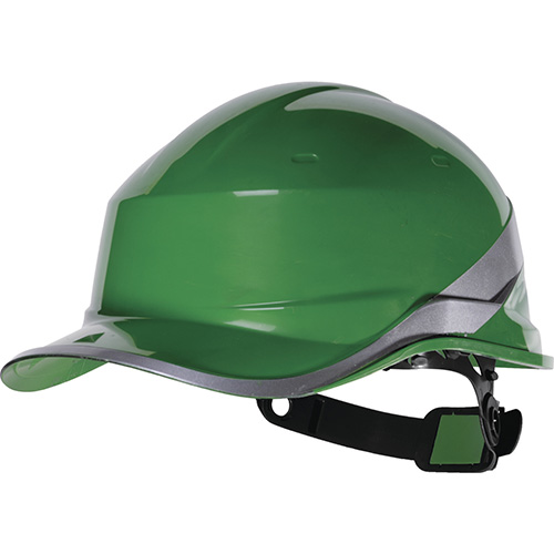 Casco de obra ABS. Forma innovadora de gorra debaseball que proporciona una mayor visión vertical. Sometido a tests con visera llevada hacia delante o hacia atrás, para menos estorbo. Arnés interior de poliamida : 3 bandas textiles con 8 puntos de fijación. Sudadera de esponja. Sistema innovador de presión con botón “color to color”. Ajustable desde los 53 a los 63 cm de contorno de la cabeza. 2 posiciones posibles de contorno (alto/bajo) para un mejor confort. Aislamiento eléctrico hasta 1000 VAC o 1500 VCC.