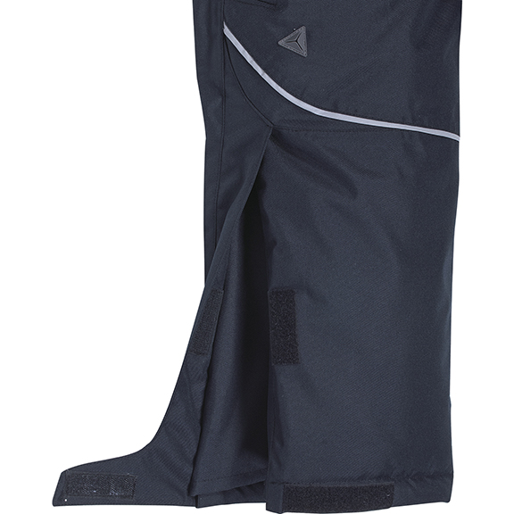 Pantalón acolchado. Costuras termoselladas. Cintura ajustable por cordón elástico. Tirantes ajustables. Rodillas preformadas y reforzadas. 5 bolsillos.